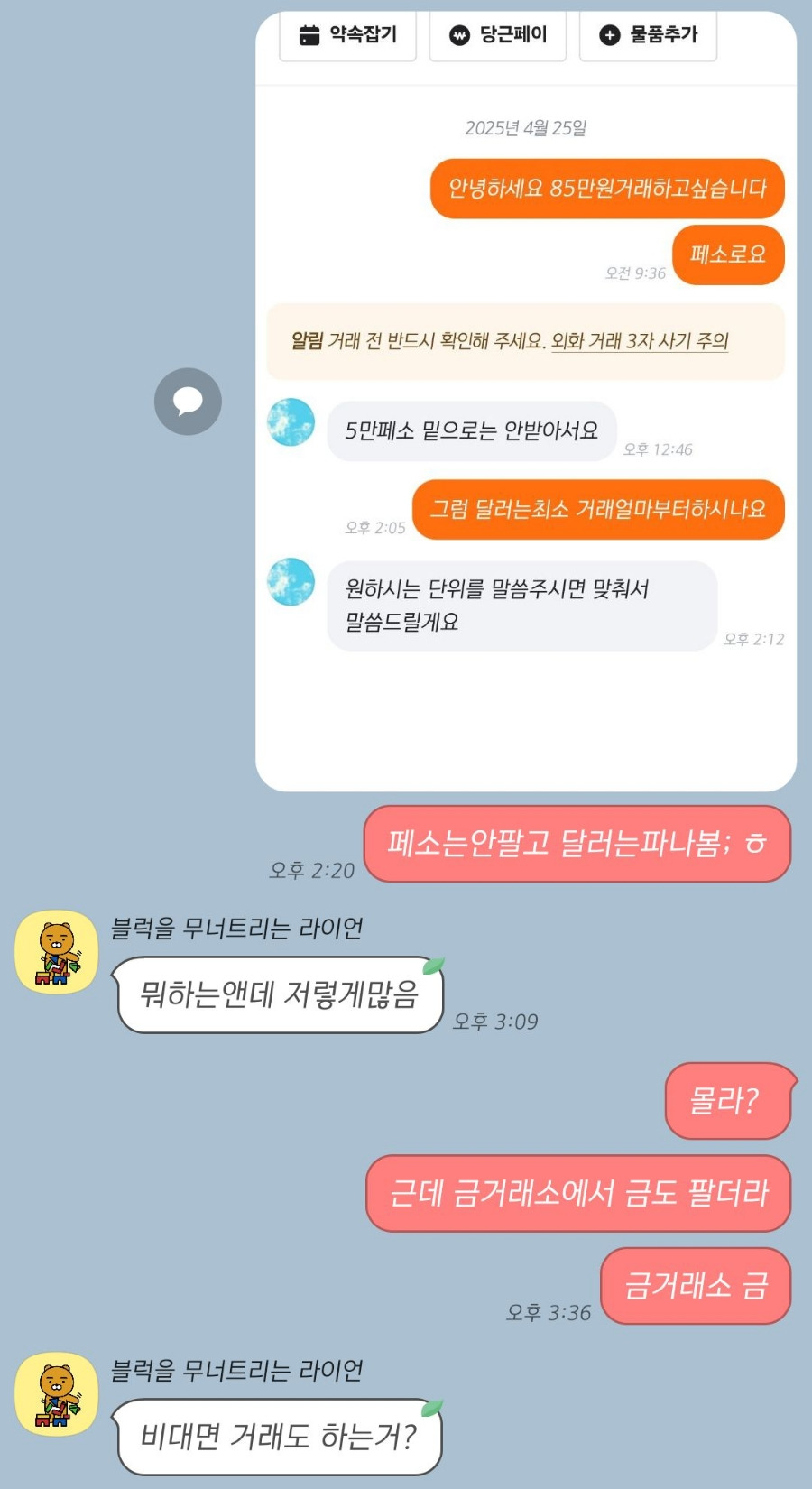 대충 저사람이 달러랑 페소를 같이 팔고 있었는데, 달러와 페소가 엄청 많이 나열된 사진을 올려두었고 과거 거래 내역에 금거래했던 것도 있었음.